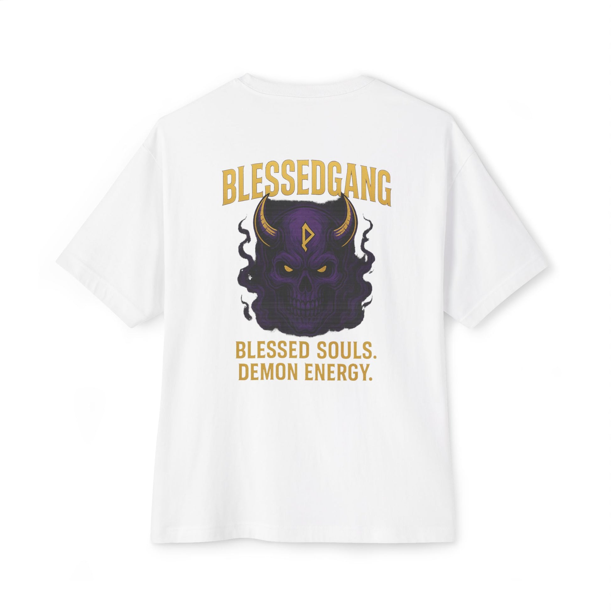 Unisex Oversized Graphic Tee, Blessed Gang Demon Energy Shirt, Casual Streetwear, Gift for Friends, Festival Wear
